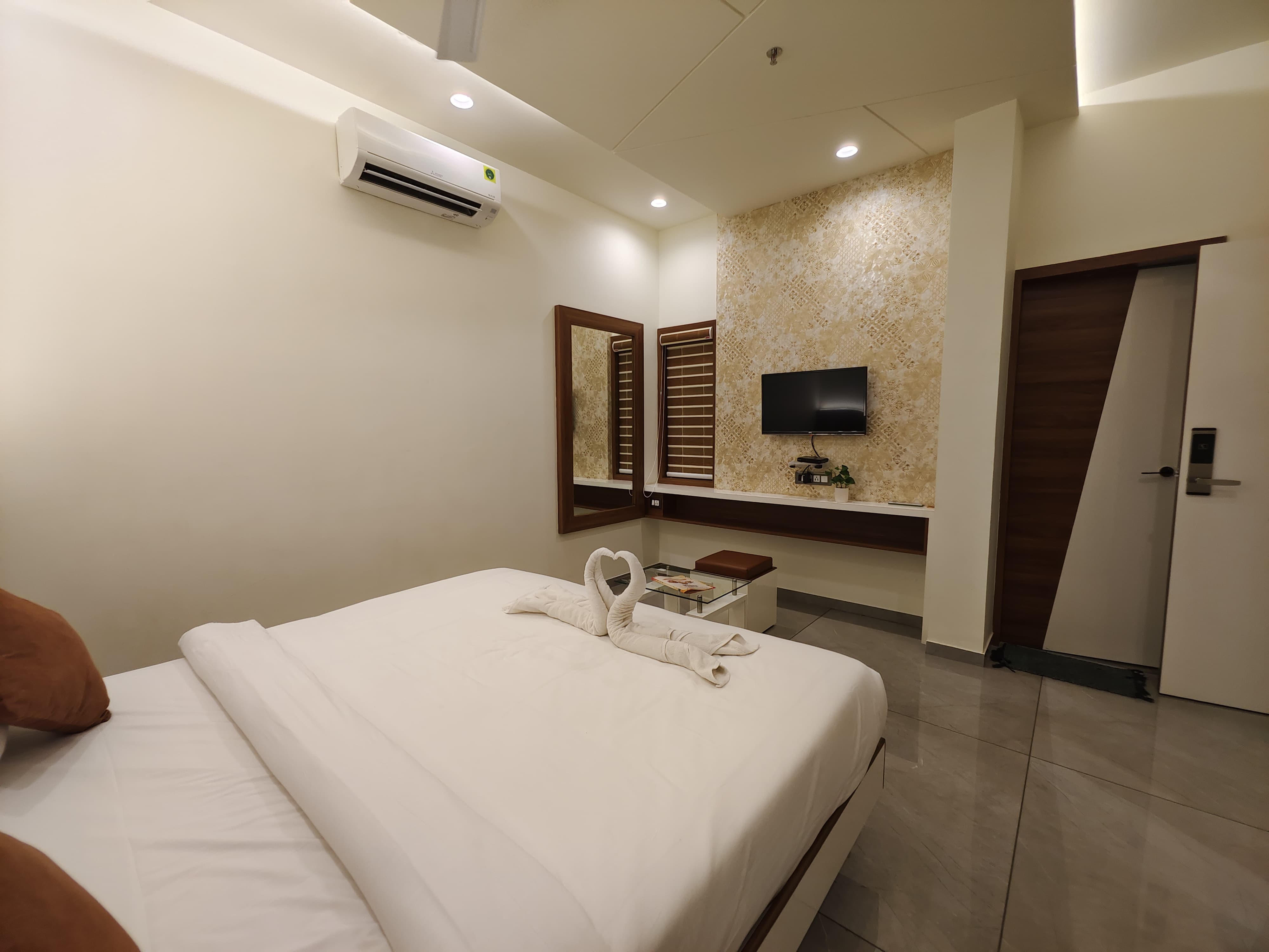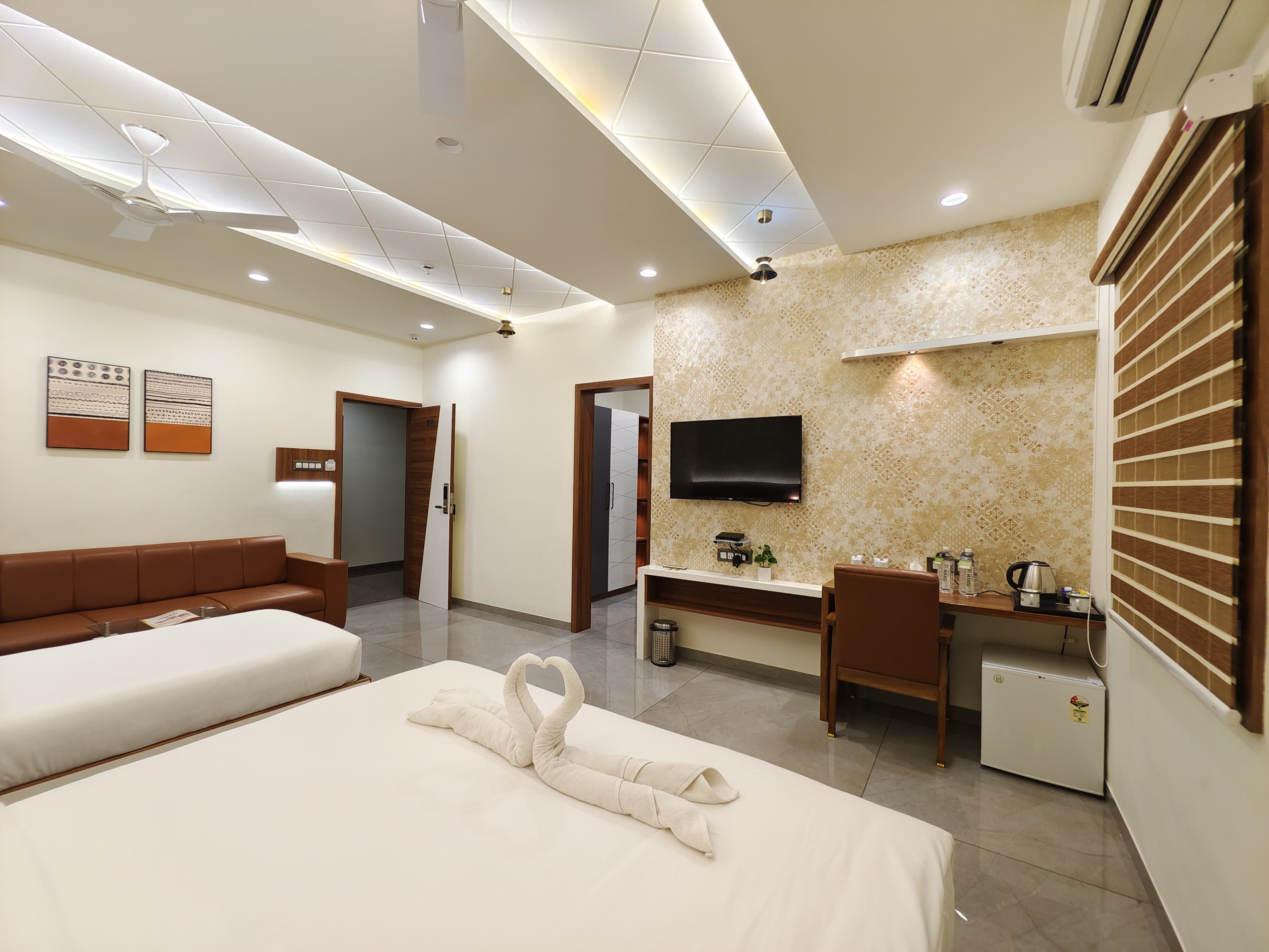 A spacious retreat with premium comfort, seperate wardrobe area, plush interiors, and an inviting atmosphere perfect for business or leisure.